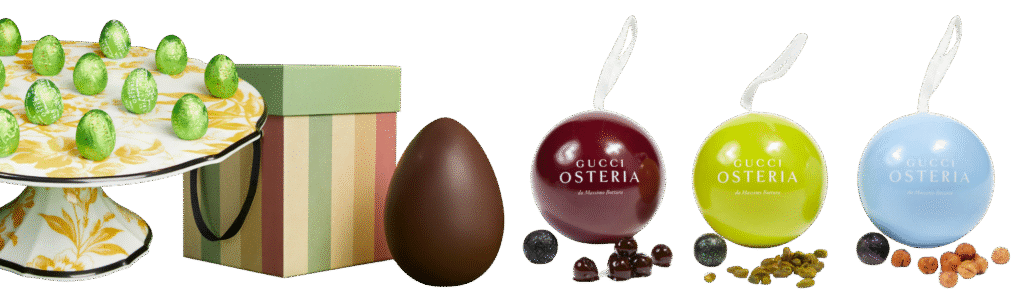 Each holiday season, Gucci introduces limited-edition sweets — hand-painted chocolate Easter eggs, whimsical pastries, and delicate Christmas ornaments wrapped in Gucci motifs. These are not mass-market novelties but intimate, edible gestures that tie nostalgia to the brand in a fleeting, personal way.